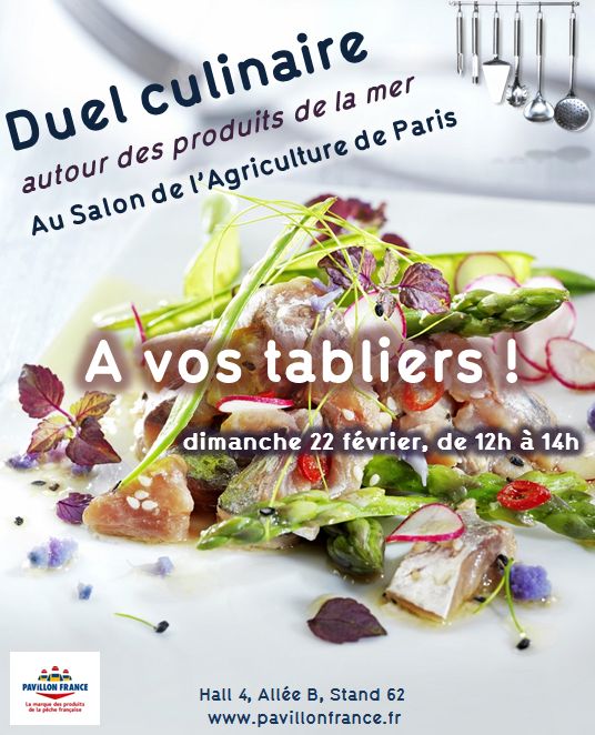 Je vous invite à me rejoindre en cuisine le dimanche 22 février pour un passionnant duel culinaire organisé par le Pavillon France, mettant à l’honneur les produits de la mer au Salon International de l’Agriculture.