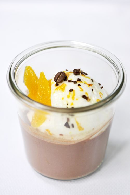 Ajoutez un zeste de mandarine et saupoudrez des grains de café finement concassés sur les blancs en neige. Creusez une petite cavité pour y placer des quartiers de mandarine. Dans de grandes tasses, versez le chocolat chaud et déposez délicatement les blancs en neige.